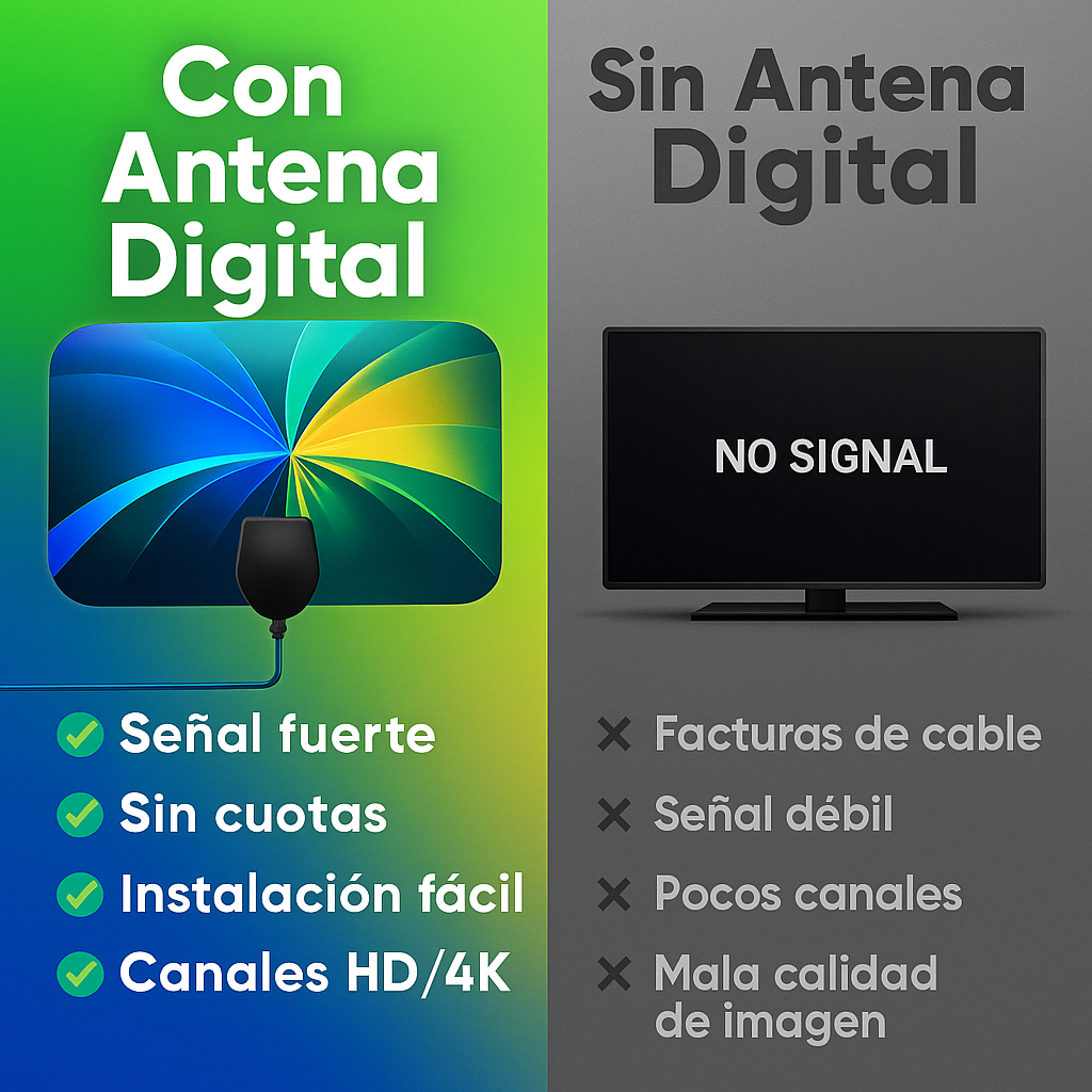 - Ahorro real: TV en abierto sin cuotas mensuales.