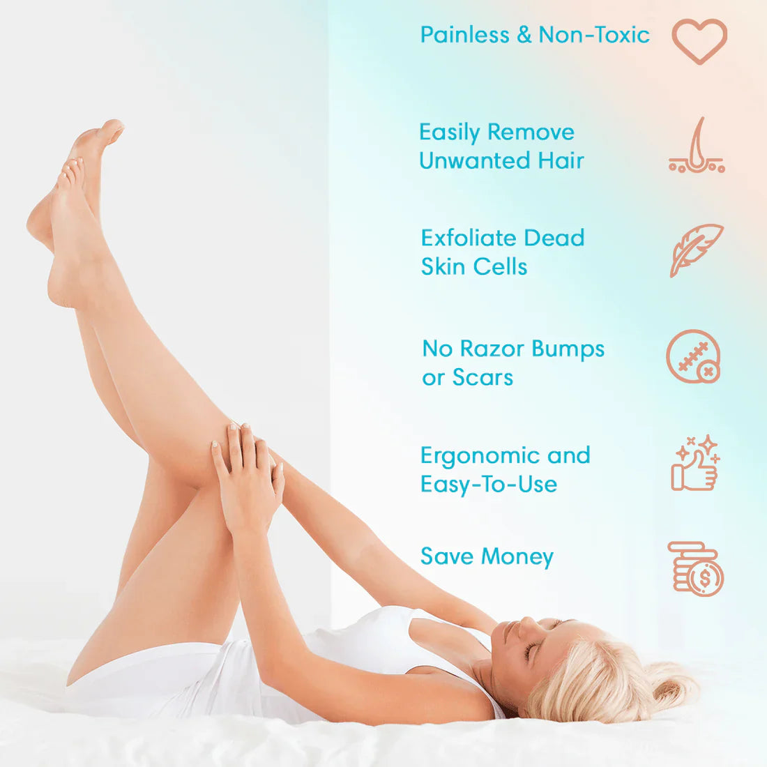 Di adiós a la cera, los cortes de cuchilla y los costosos láseres. Con la Depiladora de Cristal Mágica eliminas el vello con un simple movimiento circular, exfolias suavemente y dejas tu piel limpia, suave y luminosa, todo desde la comodidad de tu hogar.