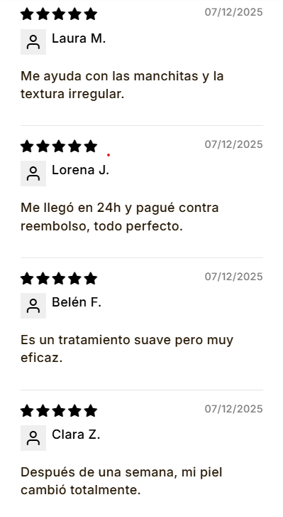 Masaje: Masajee suavemente el producto sobre la piel con las yemas de los dedos con movimientos circulares, evitando el área de los ojos y la boca.