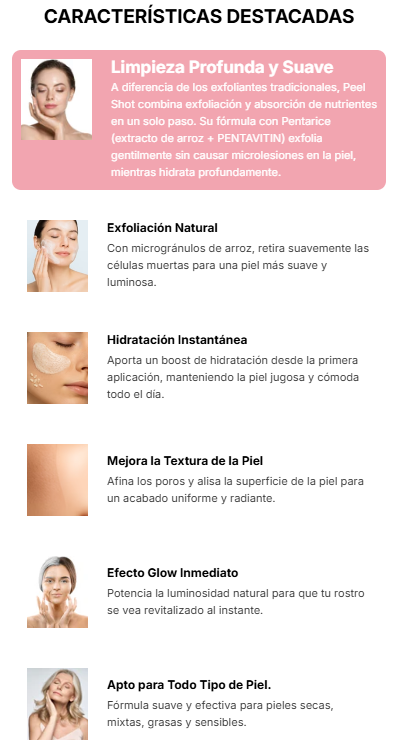 InfiniteShot ha sido formulado para adaptarse a pieles secas, mixtas o grasas. Limpia y exfolia suavemente sin resecar, aportando hidratación ligera y dejando la piel con un acabado uniforme, fresco y cómodo durante todo el día.