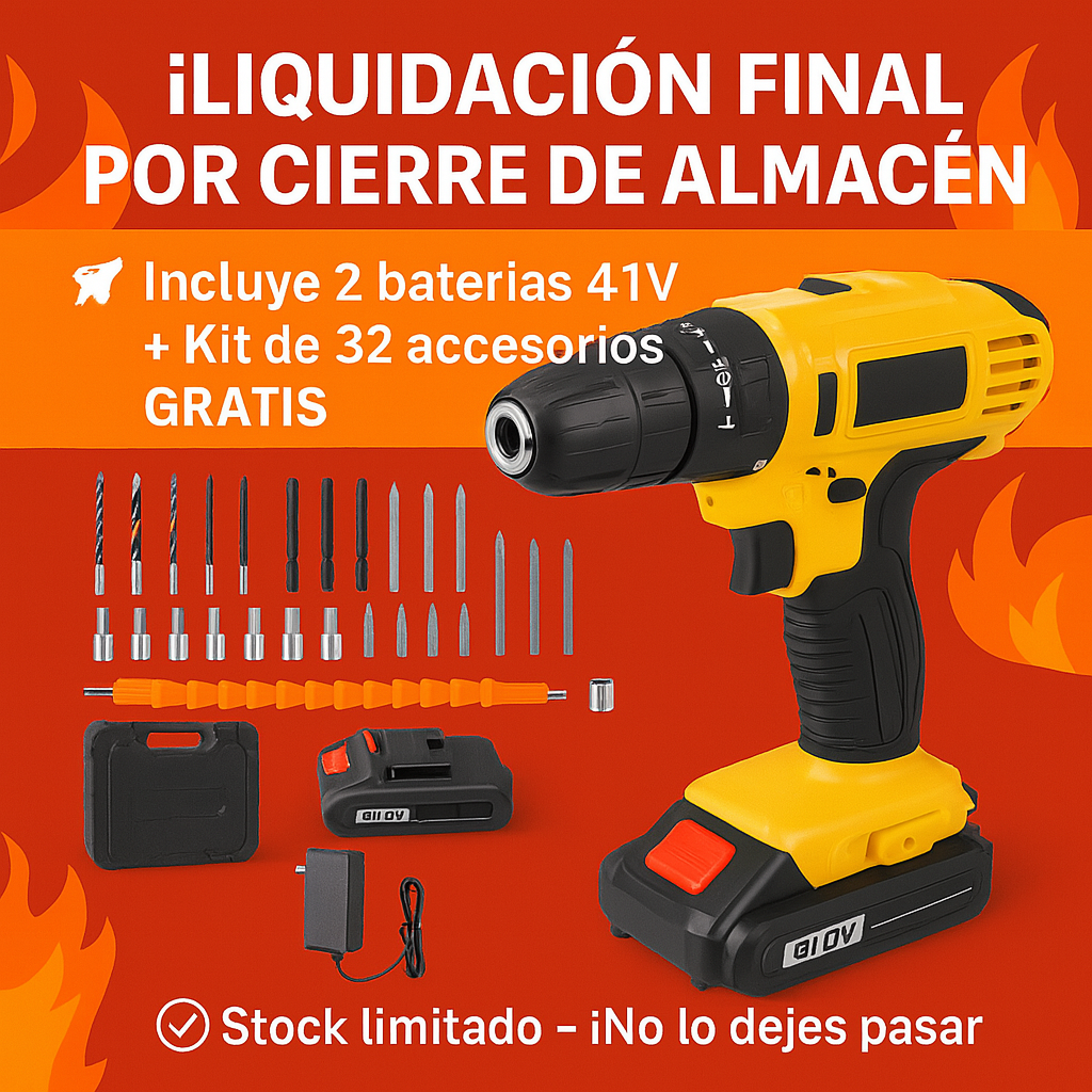 Taladro Inalámbrico 21V con 93 Piezas + Alicate, Cinta Métrica y Más de Regalo (LIQUIDACIÓN POR CIERRE)